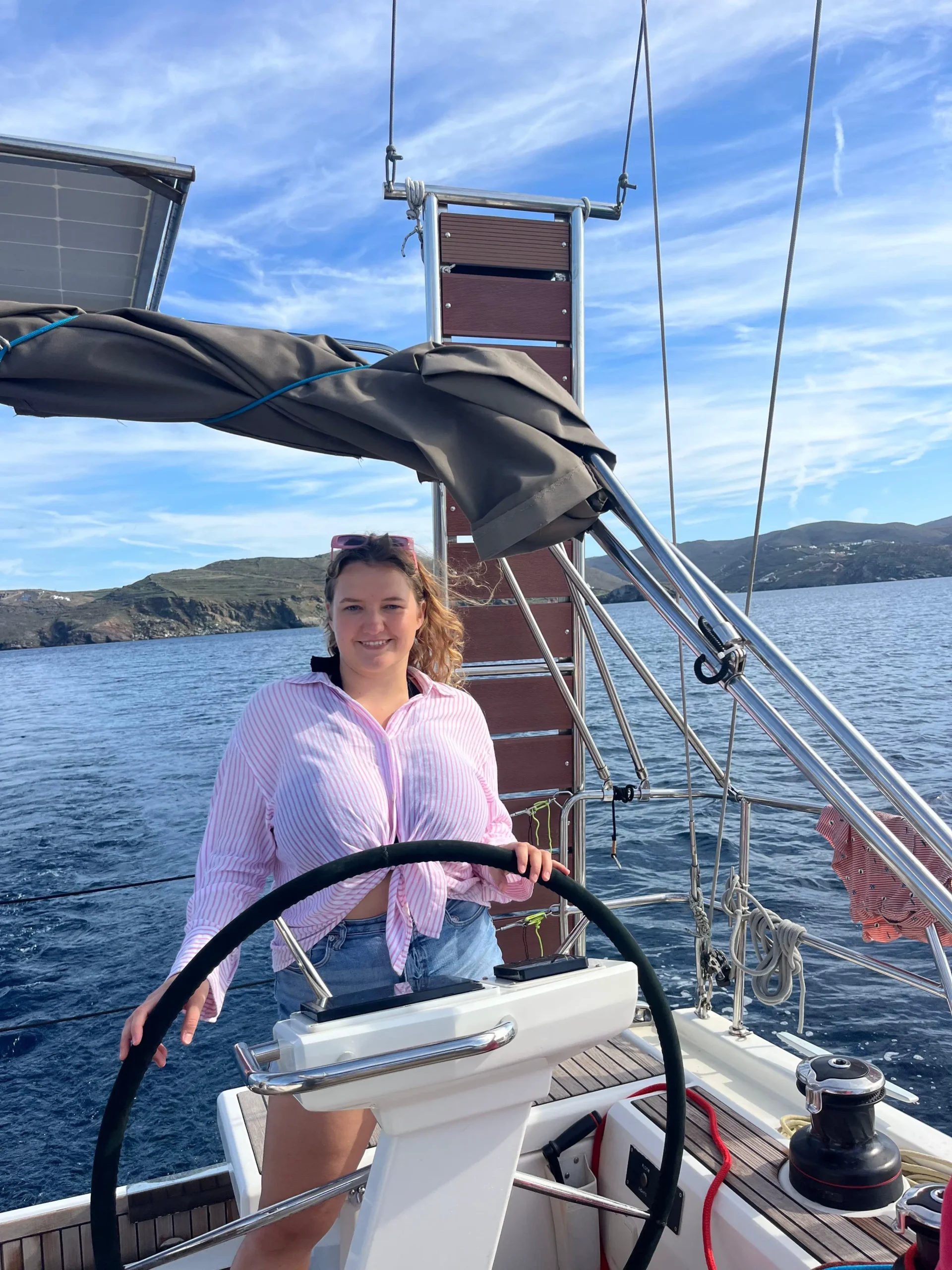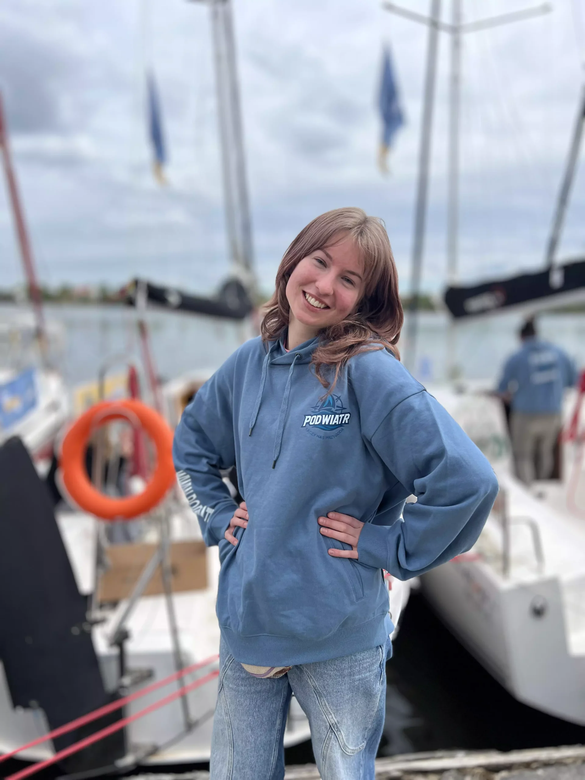 Czasem żegluje na Bałtyku, czasem szkoli na Mazurach, a na co dzień pracuje jako grafik i projektantka marek. Poza żeglarstwem od kilku lat pasjonuje się wspinaczką wykorzystując Mikołaja do asekuracji. Jeżeli myślisz, że wiesz gdzie akurat jest, to się mylisz, bo sama może nie wiedzieć gdzie się będzie podziewać.